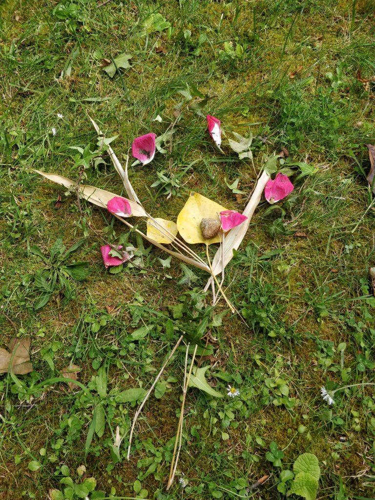 Vous allez avoir 10 minutes pour aller explorer les environs et collecter un maximum d’éléments naturels (feuilles mortes, cailloux, bâtons…). Une fois tous ces éléments rassemblés, vous devrez créer tous ensemble des grandes fleurs au sol à l’aide de ces éléments. Il faut donc bien s’organiser et travailler en équipe pour que les fleurs soient prêtes dans le temps imparti, et ainsi sauver les abeilles !